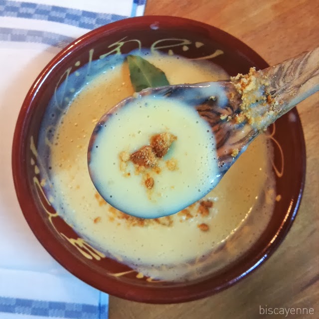 Dificultad, así de primeras: receta apta incluso para modernos Probables complicaciones: posible proliferación de grumos y grumetes Sabor: a cena junto a la chimenea, a posguerra, a familia y herencia Receta de inspiración: escautuna esnian, página 34 de Escualdun cocinera, Bayonne, Francia, 1864.